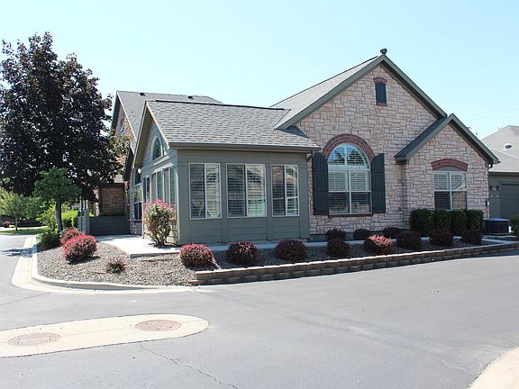 This must see wonderful condo, located in beautiful Orchards at Cloverdale gated community. Very open floor plan with shutters throughout. Large kitchen, with granite & breakfast bar, then opens up into great room, wide plank wooden floors are also in unbelievable sunroom. Primary bedroom solar tube in bath with dual vanities & walk in closet. Second bedroom has bath right outside door. Potential 3rd bedroom is amazing office with buit in bookcase (adjustable shelves). Gas fireplace, good size patio area & att security systems. Enjoy this maintenace free lifestyle. Club house features fitness room, large kitchen, pool and much more. Many members meet at the clubhouse for cards and games. Hoa includes water, sewer, trash, landscaping, snow removal & exterior building maintenance. BTVAI!