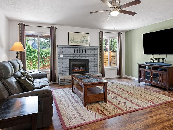 Here's your chance to enjoy this lovely remodeled single level home located in an established NE Bend neighborhood with pride of ownership! In 2018 a new roof was installed and new siding, a full kitchen redo, new flooring throughout, new windows, and a 3rd bathroom added to make two main bedrooms with en suites and with one having a separate exterior entrance which was used as a room rental. Enjoy entertaining or relaxing on the large enclosed front porch or the back deck areas. Central A/C was added two months ago. Fully fenced back yard with shed. Double car garage and there's even room to park your RV/Boat or toys!