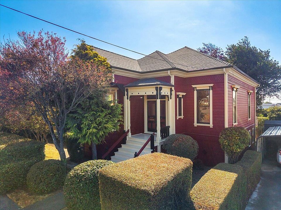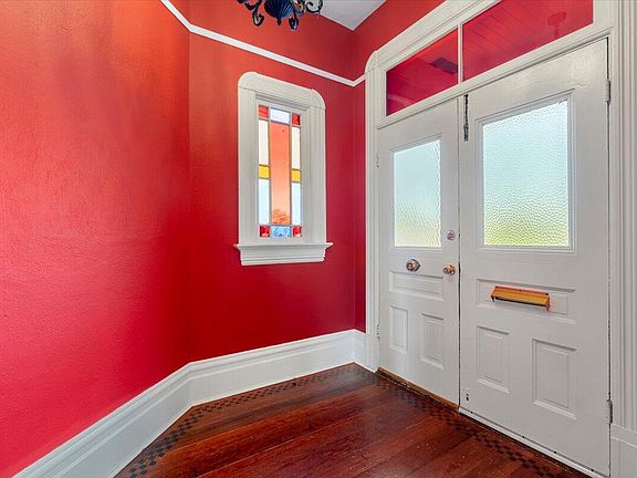 Beautiful 1890 Victorian near Henderson Center with local lore that she was built for the Mayor's mistress, once upon a time. The foyer and parlor have beautiful stained glass in colors that complement the freshly painted exterior. The parlor and dining room have new floors and tall windows with southern exposure that let in sunlight and offer private, green views. The vintage kitchen has a spacious layout, new Marmoleum flooring and leads to the covered veranda. The bathroom is elegant with good storage and the two generous bedrooms feature carpet from the original Eureka Theater in good condition. The heated basement has interior and exterior access with 800 sq' for storage plus a laundry room. A back alley leads to graveled parking for two cars and a backyard that bloom beautifully in the spring. All appliances are new within two years and the Mc Murray roof is approximately 10 years old. Truly a lovely, colorful Victorian for the artistically inclined and those seeking a sweet vintage home within walking distance to all amenities.