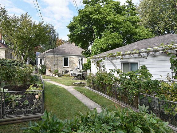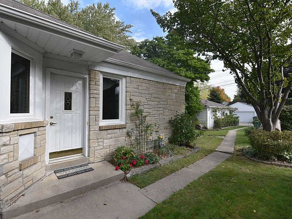 Ranch home with lannon stone exterior and charming backyard! Enjoy a home with style and character throughout - real hardwood floors, crown molding, white trim, bay windows, and remodeled bathroom. Living room with direct vent gas fireplace, recessed lighting, and plenty of windows and natural light. Kitchen with dinette and large pantry closet. Lower level features a 23 x 12 finished rec room and plenty of additional room for storage and laundry. Awesome backyard with raised gardens, grape vines, pond/fountain, and detached garage.