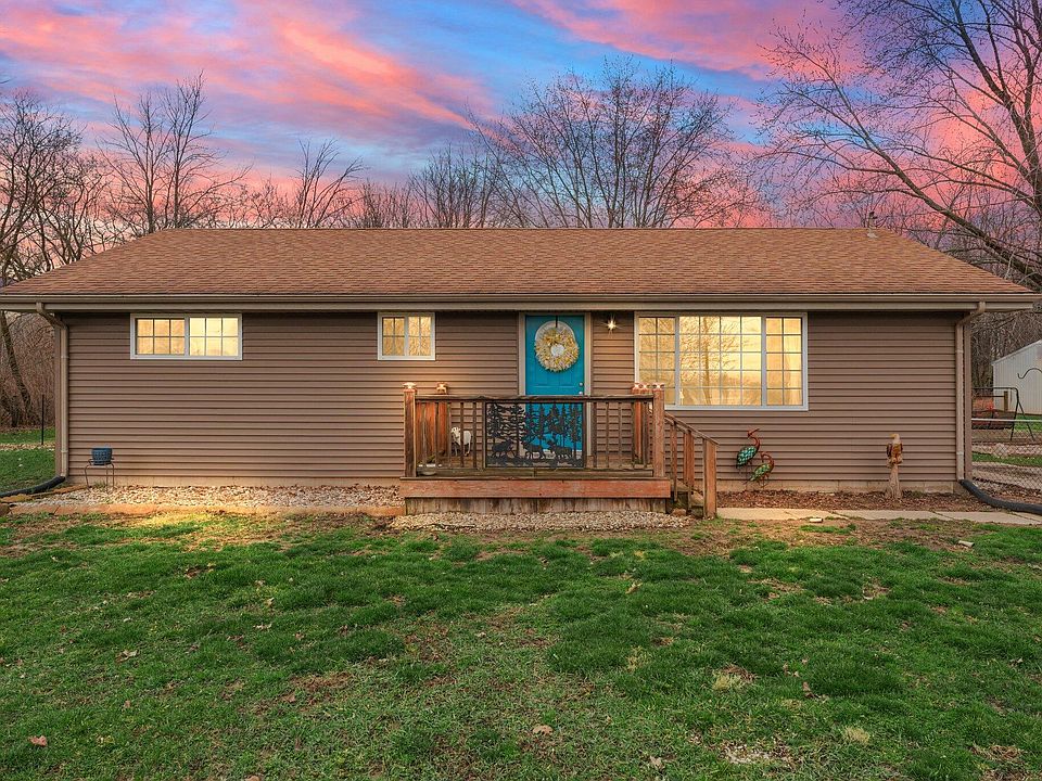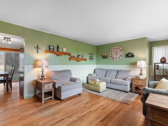 Peaceful country living awaits! Look no further than this charming 3 bed 1.5 bath ranch situated on 5 spacious acres. The eat-in kitchen and full bath feature modern updates and the full basement provides for additional living space along with plenty of storage. This sprawling property also boasts a 3.5 car detached garage, 28x48 barn, 2 fenced pastures and plenty of room for your own additions and finishing touches. You'll find all of the benefits of country living here in addition to close proximity to shopping, dining, and expressways. This one is a must see!