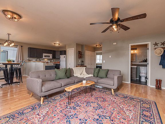 Move-in ready 2 bed, 2 bath home with 1,008 sq ft of thoughtfully designed space! This single-level gem features an open floor plan, with laminate flooring in the main living areas, vinyl in the bathrooms and carpeted bedrooms. The kitchen boasts a pantry and beautiful live edge breakfast bar, perfect for casual dining. Enjoy abundant natural light from the numerous windows. Outside, a spacious, fully fenced, and irrigated backyard with a patio offers plenty of room for relaxation or entertaining. A two-car garage provides ample storage. Centrally located near schools and parks, this home is a must-see!