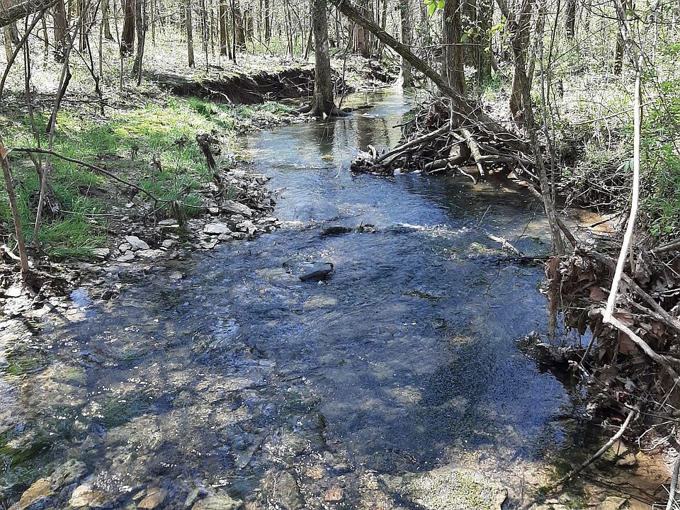 Park like setting on 5+/- acres with a creek and woods. Spacious home with 4 beds and 2 baths featuring a kitchen with large pantry, split floor plan, main bath off primary bedroom has garden tub and walk through closet. Home features a newer roof, newer windows, tankless water heater and stunning back yard view from sunroom. Storage shed included, ramp off back deck, lots of updating including flooring, trim, vanities and more.