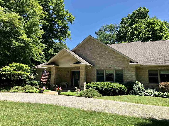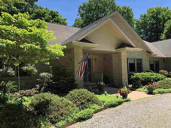 This three bedroom home has a beautiful park-like setting situated on approximately 4 acres. Home features a master suite on the main level with two walk in closets. Enjoy your morning coffee in your screened in porch. There is a formal dining room, hobby room, den and several built ins for displaying your treasures. Large laundry room is on the main level with beaded cabinets, pocket door, plenty of counter space & storage. Unique custom kitchen with stained glass doors to match light fixtures. The foyer opens up into a gorgeous great room with gas fireplace and beamed ceiling with exceptional woodwork. The builder, Jim Wallace, took extra care throughout the home with quality craftsmanship. The exterior boasts an extra large (28x40) two car garage with plenty of storage, a work bench for all your projects and entry to basement. Plenty of shade from mature trees, access to pond, and convenient circle driveway. Home warranty available. Call today to see this amazing home!