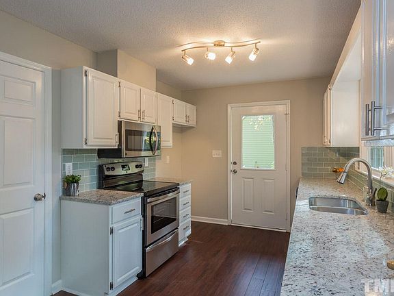 GORGEOUS bright open floor plan with upgrades galore! New custom designer kitchen that features granite, glass tile backsplash and Stainless Steel appliances. 5 inch handscraped flooring; NEW plush carpet & designer paint. AWESOME master suite with granite. HUGE deck. New roof 2017. Convenient to Downtown Holly Springs, Holly Springs Town Center and 540. Move in and enjoy!