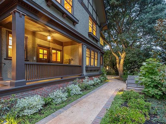 Highly desirable condo in historic Tudor house in the heart of Elmwood, on the corner from the Uplands, and just two blocks to College Avenue!! Easy walk to Peet's and Fournee Bakery by the Claremont Hotel, and to Claremont Canyon hiking trails. Walk to BART or take the Transbay bus which picks up in front of the house for easy SF access. Washer and dryer in unit. Private deck. New renovated fireplace marble mantle with gas insert. Renovated bathroom and kitchen. Open floor plan with 10 foot high ceilings and hardwood floors throughout. Granite and stainless steel kitchen with gas range. Spacious kitchen and open dining room area great for dinner parties. Original details include leaded windows and archways. No carpeting and freshly painted! Gardener, fridge, microwave, washer & dryer, AC and big screen smart TV included. Great HOA amenities include beautiful French garden with wooden benches and tables. Detached garage and parking space in front of garage included. Owner pays for HOA fees, garbage and gardener. No smoking. Small dog or cat upon request and approval with pet deposit. Fridge, microwave, washer & dryer, AC, automatic shades and big screen smart TV included. Owner pays for HOA fees, garbage and gardener. No smoking. Small dog or cat upon request and approval with pet deposit. Fridge, microwave, washer & dryer, big screen smart TV, automatic shades and AC included. Renter responsible for water, electricity, heating and AC.