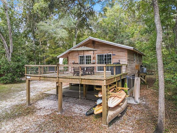 Introducing Santa Fe River's newest WATERFRONT property located in the highly desirable neighborhood of Ichetucknee River Estates. This breathtaking 3-bedroom 3-bathroom home is nestled on 1.86 acres and just 1000 yards away from the river. Enjoy your very own newly built private boardwalk that winds all the way down to an oversized pavilion. You will get to experience the ultimate luxury of having an exclusive dock to pull your boat up to. This home provides endless opportunities for outdoor recreation. Enjoy tubing, canoeing, kayaking, fishing, snorkeling, and boating right from your backyard. Whether you’re in the water or sitting from a far, you will witness the wildlife that surrounds you. This area is known for manatees and otters, which can be seen through the clear water of the Ichetucknee. Introducing Santa Fe River's newest WATERFRONT property located in the highly desirable neighborhood of Ichetucknee River Estates. This breathtaking 3-bedroom 3-bathroom home is nestled on 1.86 acres and just 1000 yards away from the river. Enjoy your very own newly built private boardwalk that winds all the way down to an oversized pavilion. You will get to experience the ultimate luxury of having an exclusive dock to pull your boat up to. This home provides endless opportunities for outdoor recreation. Enjoy tubing, canoeing, kayaking, fishing, snorkeling, and boating right from your backyard. Whether you’re in the water or sitting from a far, you will witness the wildlife that surrounds you. This area is known for manatees and otters, which can be seen through the clear water of the Ichetucknee. You will have access to not one, but two community parks with the convenience of a boat ramp. This home has been meticulously cared for and thoughtfully updated with new windows and sliders (2020), roof (2016), HVAC (2020), water heater (2012), plus a newer septic (2015). The interior features include two bedrooms, 2 bathrooms upstairs and one bedroom, one bathroom located downstairs. The open concept living room and kitchen are adorned with large windows overlooking your own backyard oasis. The balcony becomes an extension of your living space, ideal for savoring your morning coffee, al fresco dining, or just immersing yourself in nature. Downstairs is equipped with an indoor laundry room that also has ample storage space, a screened in porch, and an outdoor shower. This house is a savvy investment opportunity and is already an income producing VRBO rental. Don't miss this rare opportunity to live water side and still be conveniently located to cities like Gainesville, High Springs, Alachua, and Lake City. Whether you're looking for your forever home or your next vacation rental investment, now is the time to schedule a private viewing and explore the endless potential.