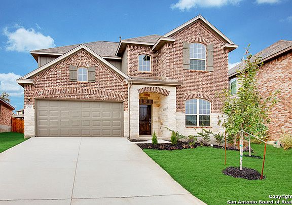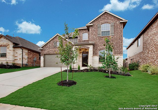 Great two story Hill Country brick and stone home features an open kitchen/living area and a master bedroom suite with a large bath .Complete with tile and wood flooring in the entry, family room and kitchen, this 4 bedroom, home has plenty of closet space, a study and a kitchen with 42 inch cabinets plus crown molding,GE gas appliances, and granite counter tops. Covered patio and back yard backing up to large green belt. Come take a look at this exceptional home with gorgeous features!