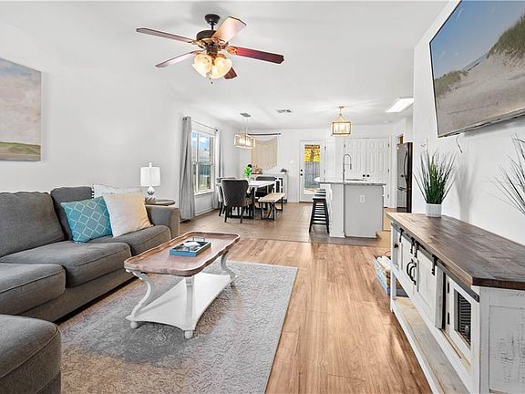 This home has an open floor plan with three bedrooms and two full baths. It boasts a large granite kitchen island and granite countertops throughout. The combined living and dining room provide an excellent space for gathering and casual dining. Additionally, the neighborhood offers a pool and playground for residents to enjoy. In the backyard, there is a beautiful large outdoor kitchen and covered patio. Additional features include exterior surveillance cameras and a smart nest thermostat. No carpet.
