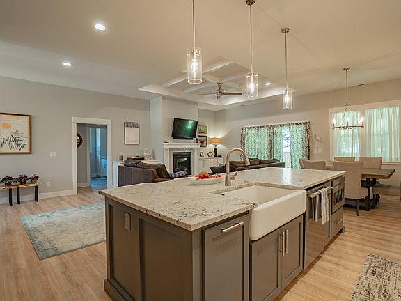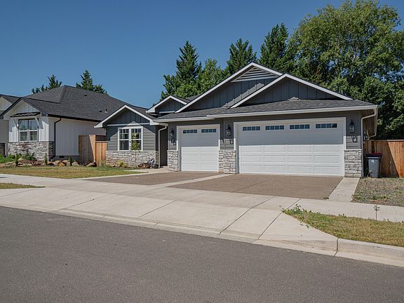 Exquisite Recently Finished 2022 residence constructed with Pride by Mitts Custom Homes. This 4 Bed/2 Bath home is in the highly desirable East Medford High Cedars at Cedar Landing subdivision. Level Design3-Car garage (new insulation in garage attic) with an abundance of Upgrades & Additional Features! Impressive entrance, spacious open layout, stunning upgraded vinyl plank flooring, tile floors in the laundry room and bathrooms, coffered ceilings in the living room and primary bedroom, gas fireplace with custom built-in cabinets, upgraded lighting and plumbing fixtures throughout, and much more. The sizable and beautiful kitchen boasts granite countertops, an island with an under-mounted farmhouse sink, custom soft-close cabinets, an oversized pantry, and upgraded stainless steel appliances. The primary suite is truly remarkable, featuring a double vanity, custom walk-in shower, deep soaking tub, walk-in closet, and wrap-around built-in shelving. 220 volt outlet for car charging.