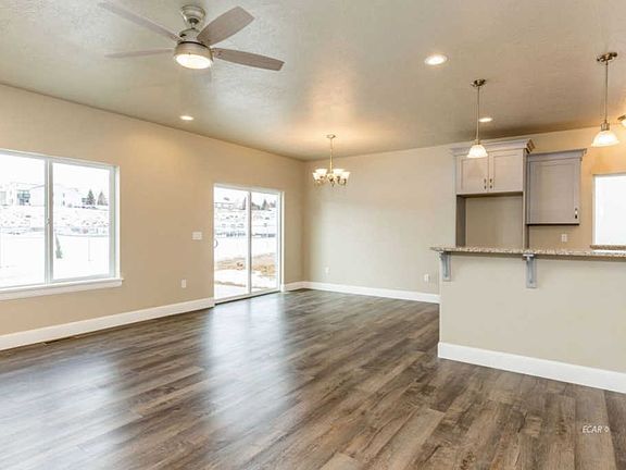 Pearl Peak 2 floor plan with 2,026 Sq. Ft. It has 4 Bedrooms, 2 Bathrooms and 2 Family Rooms. Full Stucco Exterior. Shaker cabinets in a grey tone with soft close doors and drawers. 3cm granite. LED Lighting throughout. GE Profile Slate Appliances. Two tone paint. Conditioned/heated crawl space. Upgrades include tiled in master shower with large dual heads including the rainhead shower. Family room boasts an efficient fireplace, all bathrooms have square sinks and the main peninnsula has a raised bar perfect for breakfast or entertaining. Pictures from when home was newly built less than 2 years ago.