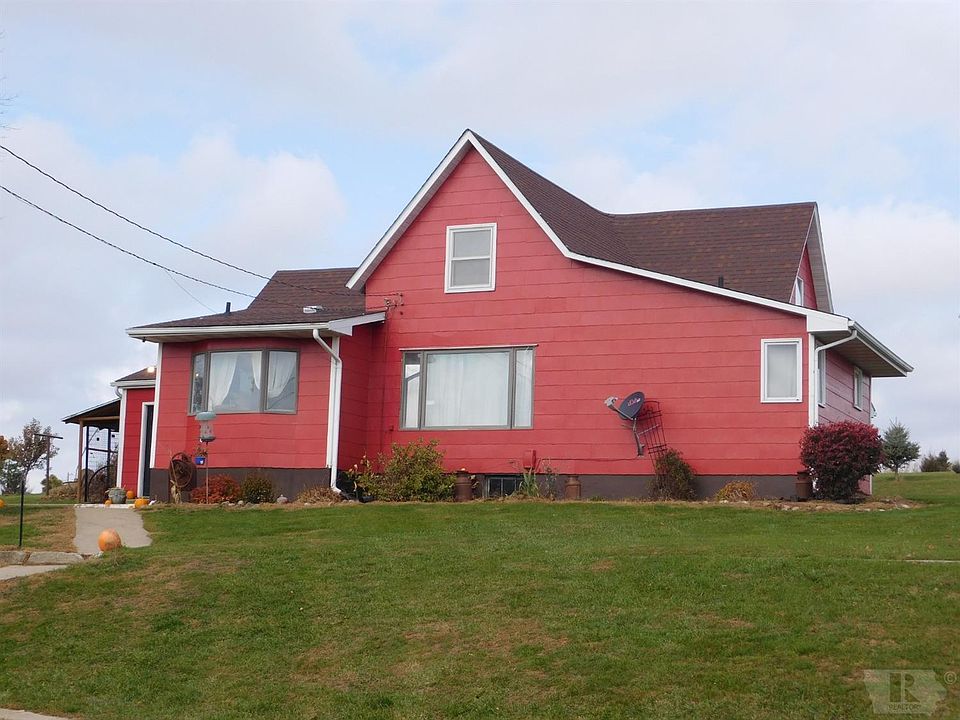 THIS ACREAGE IS A GREAT ESCAPE just off a hard surface road and minutes to Denison. This country home has an eat-in kitchen. Living room and dining room have wood floors as well as the main floor bedrooms. Large bathroom with room for the whole family plus the laundry. Second floor has 2 additional bedrooms. Basement has nice storage plus furnace, central air, breaker panel, sink and rustic bath. You will love the country view and large yard, grape vines, fruit trees, newly started evergreen trees, garden spot and much more. There are several nice outbuildings. All this is situated on 10+ acres. Bring the family, pets, horses and goats, and check it out today!