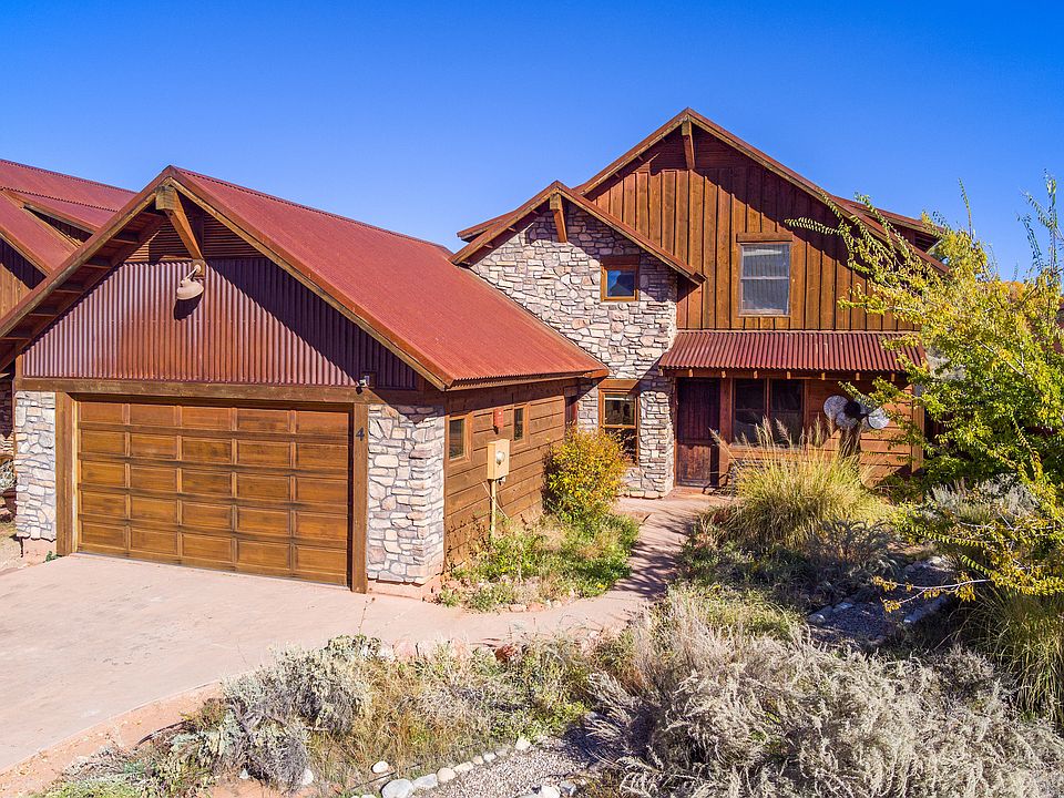 Turnkey Nightly Rental in Coyote Run! Tucked beside the scenic 9th hole of the Moab Golf Course, this charming cedar-sided getaway offers a seamless blend of comfort, style, and location. Just minutes from Upper Mill Creek Canyon and the Steel Bender Trail, this home is perfectly positioned for both relaxation and adventure. This fully furnished property includes all furnishings, electronics, dishware, and dcor, making it a true turnkey opportunity for use as a nightly rental or personal retreat. This home features stained concrete floors on the main level and brand new carpeting throught the upstairs. With 4 bedrooms and 3.5 bathrooms, including a spacious main-level primary suite, an upper-level guest suite, an additional bedroom, and a flexible bonus room with shared bath, there is room for all your guests. The open-concept great room includes a cozy gas fireplace with sandstone hearth, a well-equipped kitchen, and a light-filled dining area. Sliding glass doors in the living room, dining room, and main-level suite provide seamless access to the outdoor living space. Interior finishes include polished concrete flooring, warm wood accents, and a soaking tub in the primary suite. A detached two-car garage is enhanced with two Murphy beds and a mini-split heat/cool system-ideal for accommodating overflow guests. Don't miss this rare opportunity to own in one of Moab's premier communities! All information deemed to be reliable but buyer to verify all.