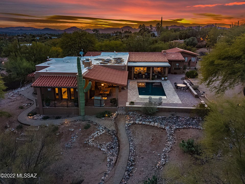 Nestled in the lower Santa Catalinas, one of Tucson's most sought after foothills neighborhoods, Cat 1! Premier shopping and restaurants nearby. Desert living with city amenities within minutes and a great school district. This stunning home has been exquisitely remodeled and taken from a 2000sf ranch style home to 4295sf featuring 4 brs, 5 ba, living room, dining room, family room that opens to the kitchen and butler's pantry. Dedicated office space with separate entrance. Casita with bathroom is perfect for a more private home office, guest room or gym. Charming front veranda, porch and courtyard with auto fill fountain. Several outdoor living spaces, recently resurfaced auto fill pool with Cantera stone and paver surround. Newer stained concrete floors throughout, 2 newer Lennox HVAC systems, full alarm system. 2 Wi-Fi irrigation systems, automatic outdoor lighting. All of this sits on one acre with plenty of parking for your guests and gorgeous mountain views!