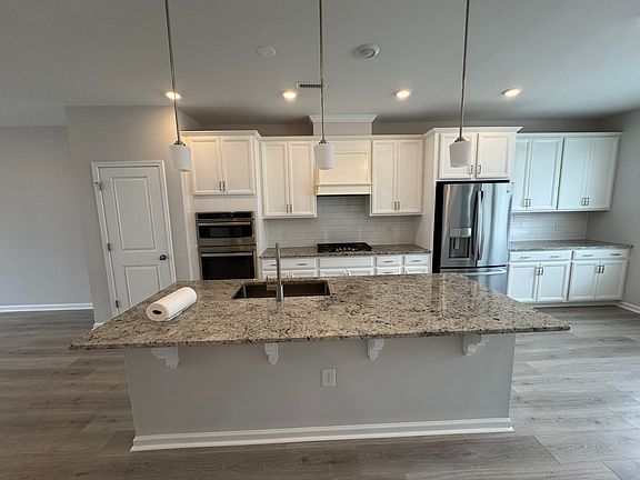The second floor has an open floor plan with LVP flooring throughout this level. The beautiful gourmet kitchen has extended white cabinets, gas range, granite counters, pendant lights, and pantry. The family room is large and opens to the deck outside. The dining room is spacious with window views. There is also a half bath at this level.