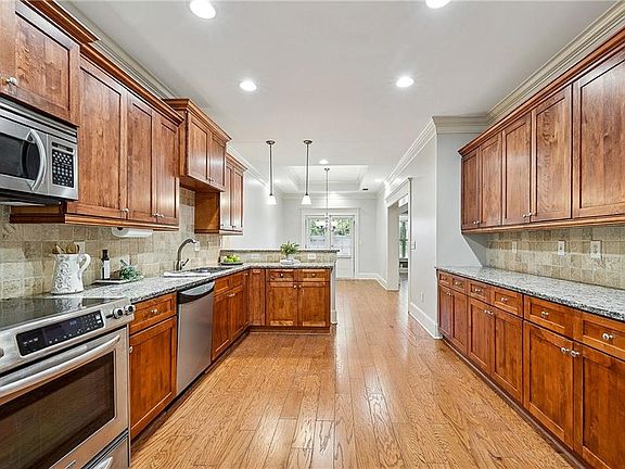 Welcome Home! The main level features a primary suite, guest bed/bath, separate office, and laundry room. The kitchen overlooks the dining area which opens onto a lovely patio perfect for your morning coffee. You will love the thoughtful details throughout this home -- hardwood floors, coffered ceiling and fireplace in the living room, high ceilings, and decorative molding. The upstairs offers a third bedroom/bathroom as well as a flexible living space and additional storage. Wellstone is a very friendly 55+ Community convenient to shopping, medical facilities, dining and recreational areas. It feels like you are living in the country, yet it is only minutes from GA 400 and Northside Forsyth! Flat streets and sidewalks for taking a walk and getting to know your new neighbors. Wellstone features a community garden, saltwater pool, hot tub, beautiful clubhouse, and activities.