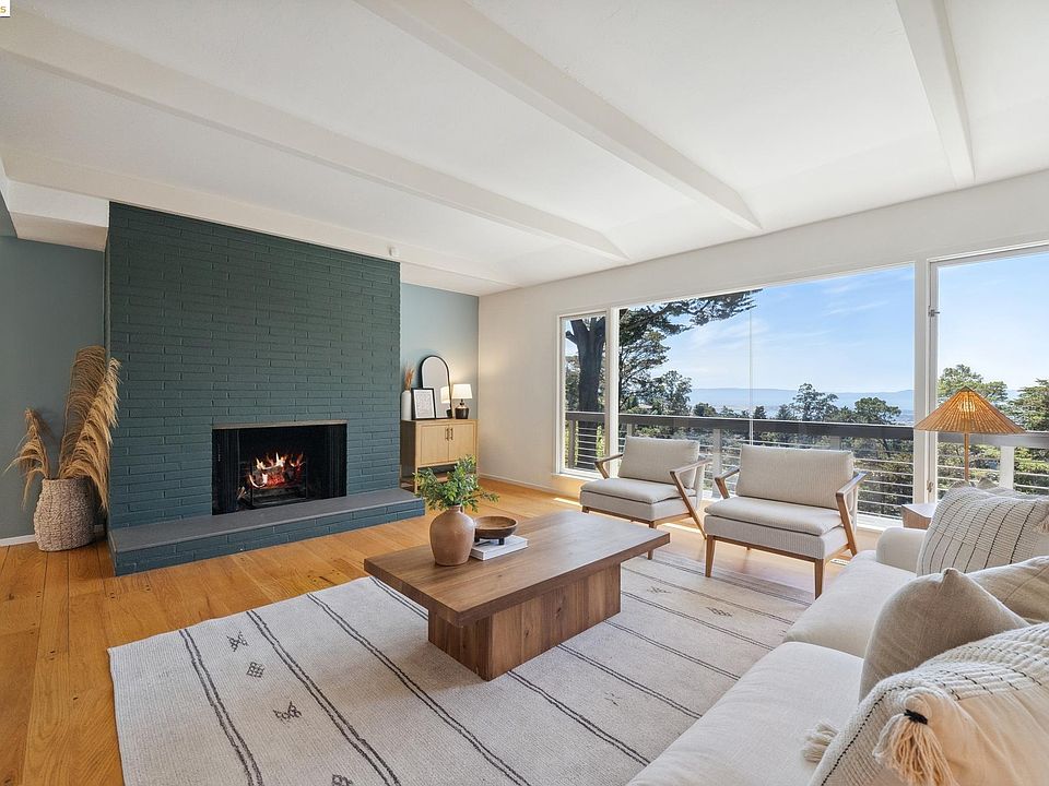 Nestled on a cul-de-sac in coveted lower Piedmont Pines, this 3,428 sq ft mid-century gem w/ Bay Views epitomizes elegance and spacious living. With 4 bdr and 3 baths, this home offers an expansive layout perfect for those who crave room to move, relax, & entertain. Enter through the spacious front deck/garden or the attached 2-car garage, and be greeted by the living rm featuring random plank hardwood floors, grand wood-burning fireplace, lg picture windows offering Bay views framed by majestic trees. The spacious updated kitchen boast bay windows, dutch doors to the front deck, many high-end newer appliances, quartz counters, and ample cabinetry. The gracious dining rm has built-ins & flows to a wrap-around view deck, perfect for entertaining or quiet relaxation. The main floor houses 3 sizable bdrs and 2 full baths, including one en-suite. Downstairs, an enormous, light-filled rumpus rm with wood panel walls & a cozy fireplace opens through French doors to another wrap-around view deck. Adjacent to the family rm is a lg laundry rm and a spacious guest suite with exterior door. Serve drinks to your guests on the front yard through casement windows in the vintage bar! Storage, cellar, or workshop in basement.