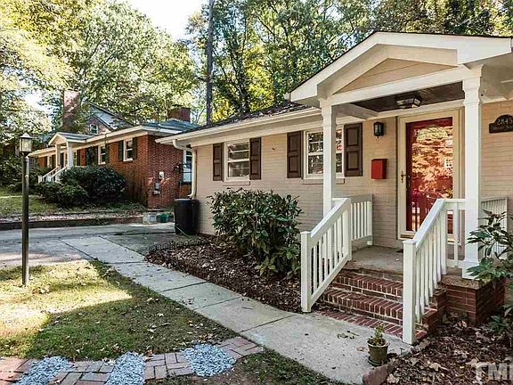 Updated all-brick ranch walking distance to NCSU or Meredith! Gourmet kitchen w/ high-end cabinets, stainless GE Profile appliances, expansive quartz counters, designer hood & lighting. Gas stove. Huge great room w/ flex space for media, music, living, dining, library, etc. Master w/ private bath. Updated hall bath w/ newer vanity & lighting. Mud room w/ sink & lots of storage. Huge deck w/ seating. Flat lot w/ wooded view; greenway adjacent. Great schools. Washer/dryer/fridge included.
