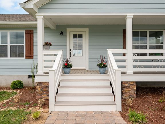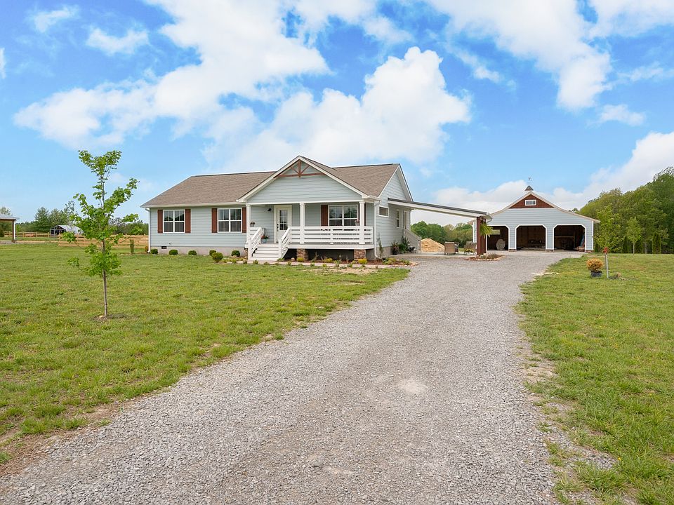 Brand New! Rocking chair front porch ranch sitting far back from the road on 5 level premium acres, partially wooded with creek! Underground utilities. Work from home with access to high speed internet. Great location only min from hwy 52 and 30 min to Gallatin. Home features open floor plan with split bedrooms. Huge primary bedroom with enormous walk in closet. Large covered patio. Big back deck to be built. Home includes furniture style vanities. Kitchen with quartz counters, huge kitchen island & stainless appliances. Large mud room with pantry & bev fridge/deep freeze hook up. Shiplap accents.Stunning 3 car garage with cupola and shake. All on a beautiful country road with rolling hills & pastures.