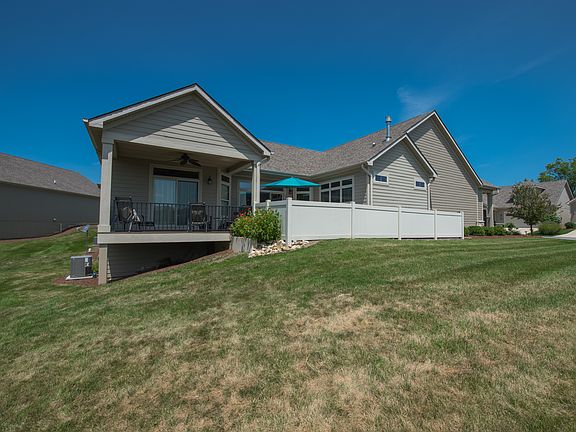 POND LOT!! Enjoy 2800 finished sq. ft. of maintenance free living. Beautiful 3-bedroom open concept ranch possesses many upgrades and amenities. Great Room boasts of floor to ceiling stone fireplace, custom cabinetry and hardwood floor. Great Room is open to spacious kitchen with maple cabinets, under cabinet lighting, quartz counter tops, tiled back splash, breakfast bar, stainless appliances, and pantry. Dining area has access to large patio which is great for entertaining. Attached to patio is maintenance free covered deck with great views of pond. Master bedroom suite provides access to covered deck plus walk-in closet and tiled shower and double sinks in the master bathroom. First floor offers second bedroom, den/office with French Doors, and laundry room. Great lower level boasts of large family room with wet bar, beverage center, microwave, and fireplace. Plenty of storage. Amenities include security system, irrigation system, and access to pool, workout room, and club house.