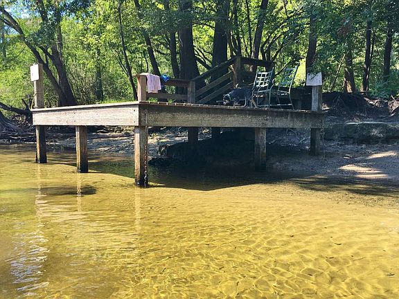 Open great room opening onto huge deck with sweeping views of Santa Fe riverfront. 2 bedrooms 2 bath upstairs, large private suite w/ bed & bath downstairs. Country style kitchen - perfect for rivertime. Screened area downstairs perfect for outdoor kitchen or living area. Take a stroll to your private beach and dock area and watch the manatees at play. Less than 1,000 ft. to the Ichetucknee gives you beautiful clear water to play in. List price includes all furnishings - except kayaks and tractor. Currently rented as a "HomeAway" w/ income of $30K plus annually. Let your RiverTime pay for itself!