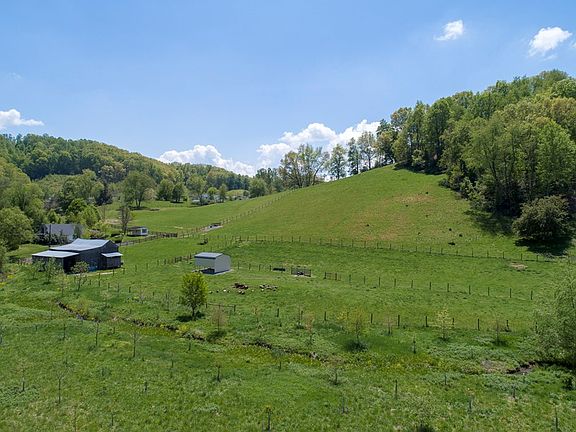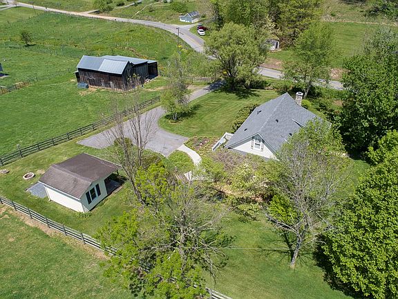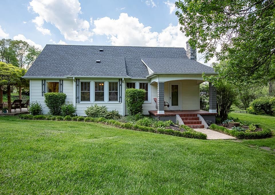 Suited to its setting, this delightful Craftsman Style Farmhouse feels right at home nestled within its 23 surrounding acres. A bucolic setting that is so enchanting, dotted with fruit trees, garden spaces, whimsical flowerbeds, fenced pastureland, a gray weathered barn & meandering creek, a vintage Spring House, and a picturesque view at the peak point will all work together to make you want to put down roots today! The home's interior floor plan presents an Open Living and Dining Room accented by a cottage look stone fireplace with gas logs. Craftsman style front door & windows add charm and curb appeal. The Master Bedroom and Laundry are both on the Main Level. The Farmhouse Kitchen is just off the Dining Room & has easy access to the wisteria-covered pergola patio for outdoor entertaining. Newer Heat Pump & the architectural shingled roof is 3 years old. Just across the road from the Harvest Table Farm, where produce is home grown & served daily at the restaurant downtown!