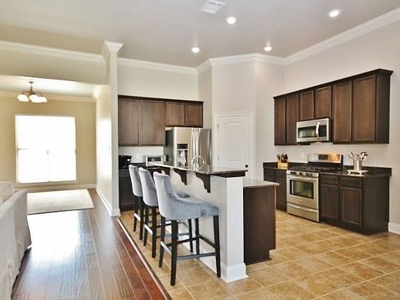 Spectacular move-in ready home located in Villages of Bocage. Handscraped wood floors in family room, dining room, and bedrooms. Gorgeous ceramic tile in kitchen, bathrooms, and utility room. Elegant kitchen with walk-in pantry, tier 2 stainless steel appliances, gas stove, and granite countertops. Master bath features double vanity, Jacuzzi tub, and stand-up shower. Freshly painted throughout. Built-in desk/office space adjacent to master. Two car garage and large fenced backyard.