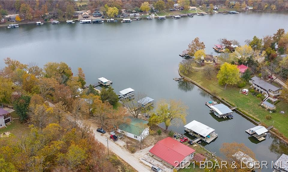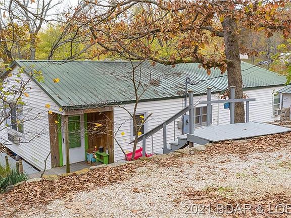 A perfect cove and perfect view. Here's a move-in ready,2/2 home with potential with 3rd bedroom. You'll love the vaulted ceiling, spacious kitchen, and breathtaking views from the covered screened deck Completely main level living on a gentle lot with the coveted wide cove, main channel view of the Gravois 4MM. The exterior has no-maintenance siding, a metal roof and plenty of deck space. Even the hot tub is included! The covered, screen deck has a great outdoor bar for entertaining. It's currently configured as a 2 bed/2 bath, however the rooms are ENORMOUS! A DIY-er could easily remodel this lake home into a 3 bedroom. Newer private well. Private septic. Minutes from Indian Rock Golf Course. By water, its close to Coconuts, Tap & Grill, Shady Gators, etc. This is a fantastic lake get-a-way home. No known subdivision restrictions and vacation rentals are okay. Seller says, "Don't like the price? Make me an offer"