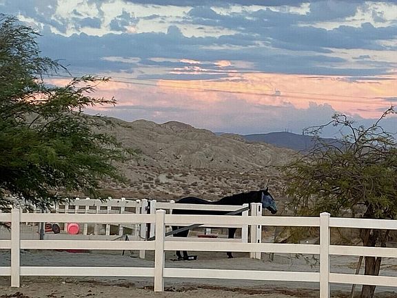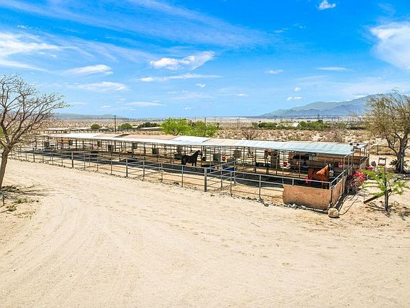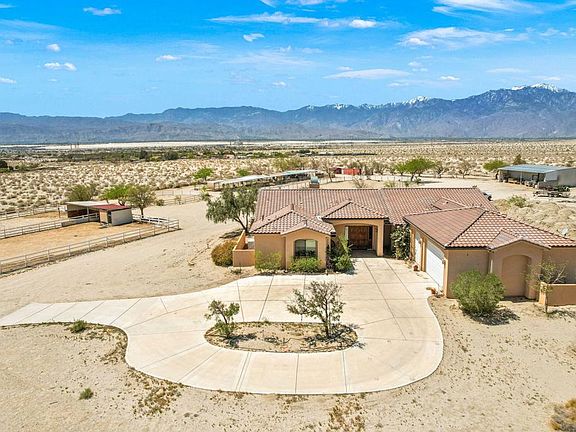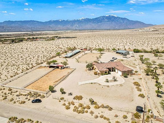 Welcome to paradise, this custom ranch home is ideal for business, horses and Short Term Rentals. Just under 5 acres in Thousand Palms California. Panoramic views of the chocolate mountains, city lights at night, and San Jacinto Mountains. If you are seeking out a place to call home that offers peace and serenity this it!. Boasting 3 large bedrooms, all ensuite, 5 bathrooms, large gourmet kitchen, formal dining room, living room and bonus room adjacent to kitchen and mud room. Over 900 sq. ft. garage easily stores, cars, trucks and toys. Two air conditioners, two evaporative coolers, two water heaters and upgraded electrical. Additional large separate, stand alone garage, complete with extra 220v electrical, roll up doors, washer and dryer hook ups and utility sink.Equestrian facility, the ''mare motel'' offers 12 covered paddocks, two large pastures complete with oversize shelters, round pen, riding arena, 8 private tack sheds for boarders, separate wash racks and TRAILS GALORE!! Approx. 10 MINUTES to Acrisure Arena, approx. 15 minutes to downtown Palm Desert, approx. 20 minutes to Palm Springs Airport. Shopping galore nearby. The Thermal Club, Tennis, Polo and Jacqueline Cochran Regional Airport are a short drive.