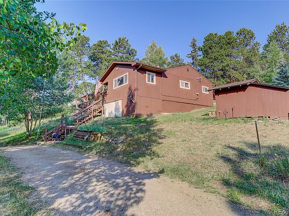 Have you been looking for a slice of mountain paradise to call your own? Wow, this is it! Charming 4 Bedroom, Two Bath RANCH Home on nice .47 Acre Lot with perfect Southern Exposure. Located in super convenient (and quiet too) Green Valley Ranch. This easy living open floor plan features a large living area with Cozy Pellet Stove Insert, Parquet Floors and Dual Pane Windows that fill this home with natural light. The OPEN Kitchen has Knotty Pine Cabinets, plenty of counter space and looks onto the Dining and Living Area. Relax on the Deck and enjoy the well maintained and lush yard. Storage Sheds and Bonus Parking Area all on a quiet county maintained street while overlooking a picturesque Aspen Grove with all the wildlife to enjoy. Just two minutes to Hwy 285 and 2.5 miles to Conifer Proper. Note these great updates - Furnace (2019), Washer/Dryer (2019), Well Pump (2018), Tankless Water Heater (2016), Pellet Stove (2015). This is a rare find and a Must See Property!