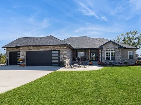 Ultimate Countryside Retreat on 21 Acres. Stocked Pond, Pole Barn, Pool & More! Discover the perfect blend of luxury & nature with this stunning 21.05-acre property nestled in the rolling hills of Madison County. This expansive estate is a dream come true for outdoor enthusiasts & those seeking a peaceful, self-sustaining lifestyle. The beautifully appointed 6-bedroom, 4-bathroom home offers over 4,657sf of finished living space, featuring 9ft ceilings & a vaulted living room with a cozy fireplace. A newly added $100,000 vaulted heated covered deck provides breathtaking, year-round views of the abundant wildlife, including big deer, turkeys, & bobcats. Outdoor features abound, with a stocked pond, sparkling pool, irrigated landscaping, & watered raised bed vegetable garden that ensures fresh homegrown produce. 45x80 heated & insulated pole barn, located on its own parcel, is equipped w/water, septic, electric, & four 14x14 overhead doors, ideal for storing equipment or pursuing hobbies. It also includes a bathroom for added convenience. The finished basement offers even more space for family gatherings, exercise, gaming, or even meat processing, thanks to the full basement kitchen. Deer stands, a stone-paved fire pit, a wide concrete driveway, an entire home backup generator, several acres of food plots, & high-speed fiber internet round out the features that make this property the ultimate combination of modern comfort & outdoor living. Additional land available for purchase 2025-05-22