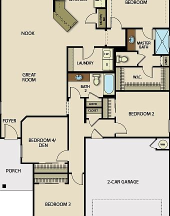The Prescott II is a single level, 4 bedrooms, 2 bathroom floorplan that has a unique kitchen layout along with a bartop kitchen island. The Great room is centralized in the home which allows for an open concept floorplan. This home also offers unique elevations that add that make it stand out in any neighborhood.