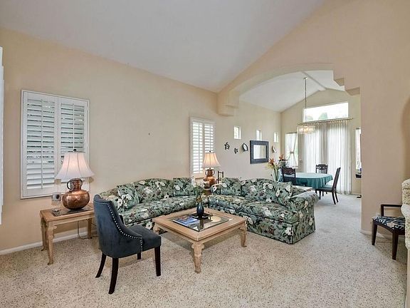 Fairways Plan 3 on nice-sized lot with one bedroom/bathroom on the first floor. Hardwood floors. Neutral carpeting. Plantation shutters. Three car garage. Formal dining room with French doors to the backyard. Romantic fireplace with raised hearth in the family room. Kitchen opens up to family room and has a center island, with an eating nook and slab granite countertops. Upstairs is the master suite with a sitting area and adjoining master bathroom with separate tub and shower, double sinks and walk-in closet. Linen closet in the hallway. The two other upstairs bedrooms share a jack and jill bathroom. The front bedroom is extra large with a very large walk-in closet. There is an interior laundry room with a washer and dryer and laundry sink. There is a three car attached garage, newer vinyl fencing and a grassy lawn plus patio. The Fairways is a desirable gated community with private streets, two walking trails accessed only by this neighborhood and 7 interior parks. Low HOF and no mello roos.