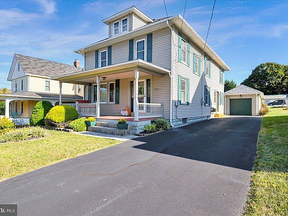 The past and present owners have done a wonderful job of maintaining the character of this 3 BR/ 2 bath home near the Maryland Line. Low Maintenance exterior with large front porch with vinyl railings, replacement windows, vinyl siding and a brand new roof in 2021. One car block garage with a cozy covered patio for entertaining by the above ground pool with a Trex deck and ornamental pond. There's even an outhouse by the pool. Alley access in the rear. Inside you will find the 2006 kitchen addition with cherry cabinets with slide out shelves, pantry, breakfast bar, all appliances, recessed lighting and laminate floors. The first floor includes a spacious living room, dining room, and office with the original trim and hardwood flooring under the carpet. You will appreciate the main level mud room/powder room with the washer & dryer included. It even has a built-in ironing board. The foyer has hardwood floor and an open stairway to the 2nd floor. The spacious owners suite was enlarged in 2006 and the owners bath with a jetted tub/shower was added along with it's own instant hot water system. 2 more spacious bedrooms and another large full bath complete the 2nd floor. The walk-up attic and full basement with outside entrance provide plenty of storage space. Natural gas fired 2 zone hot water baseboard heating with convections heaters upstairs provide warm even heating through-out the home.