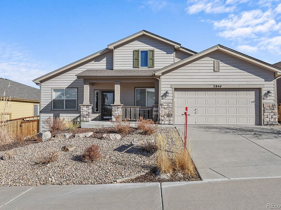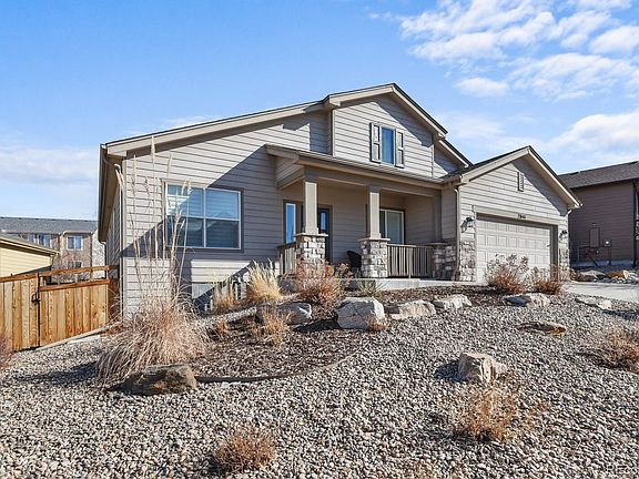 This semi-custom Joyce Homes Barrington ranch plan that is an ideal single story layout. South facing lot, covered front porch with fabulous views of Devil's Head, and low-maintenance Xeriscaped yard. Upon walking into the front door, the entry way is open to the dining room, office, kitchen and family room. Office has glass French doors, hardwood floors, and plantation shutters. The eat-in kitchen has a gas cooktop/oven, stainless steel appliances, granite counters, large island with seating, lots of cabinets, and a pantry. The laundry room is easy access of the garage and kitchen, and it has cabinets and utility sink. Washer and Dryer are included. Light and bright family room has tall ceilings, access to the backyard, and a gas fireplace. The Master bedroom can be your sanctuary with the large 5-piece master bathroom with walk-in closet. Two additional spare bedrooms connected with a shared bathroom. Both bedrooms have walk-in closets. Guests have access to a powder bathroom. Partial unfinished basement is perfect for storage or finish it to your needs. Large backyard patio is great for entertaining and enjoying the shady summer nights. Notice several handicap features throughout the home - wider doorways, grab bars in the shower, front sidewalk is like a ramp up to the front door, and no steps up from the garage.