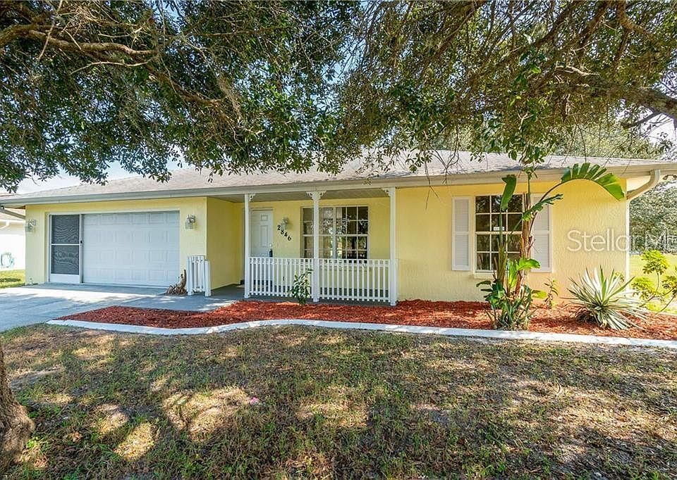 This home has a sunny Florida personality from the start! The cheerful exterior color, white picket front porch railing, magnificent shade trees, and tropical landscaping welcome you home. Inside the vaulted ceilings, sliding glass doors, and numerous windows provide an energizing flow of natural light, and create a feeling of extra volume. The open and split floor plan is perfect for entertaining and provide privacy from your guests who will never want to go home! The beautiful ceiling fans and wood look laminate flooring give this home a classic look. The screened two car garage is the perfect place to store your toys, or use as a workshop. Grill on the back patio in the evening after a fun day at a local beach, golf course, or a day of shopping and enjoy the large backyard. At this price, this home will not last long. Call today!