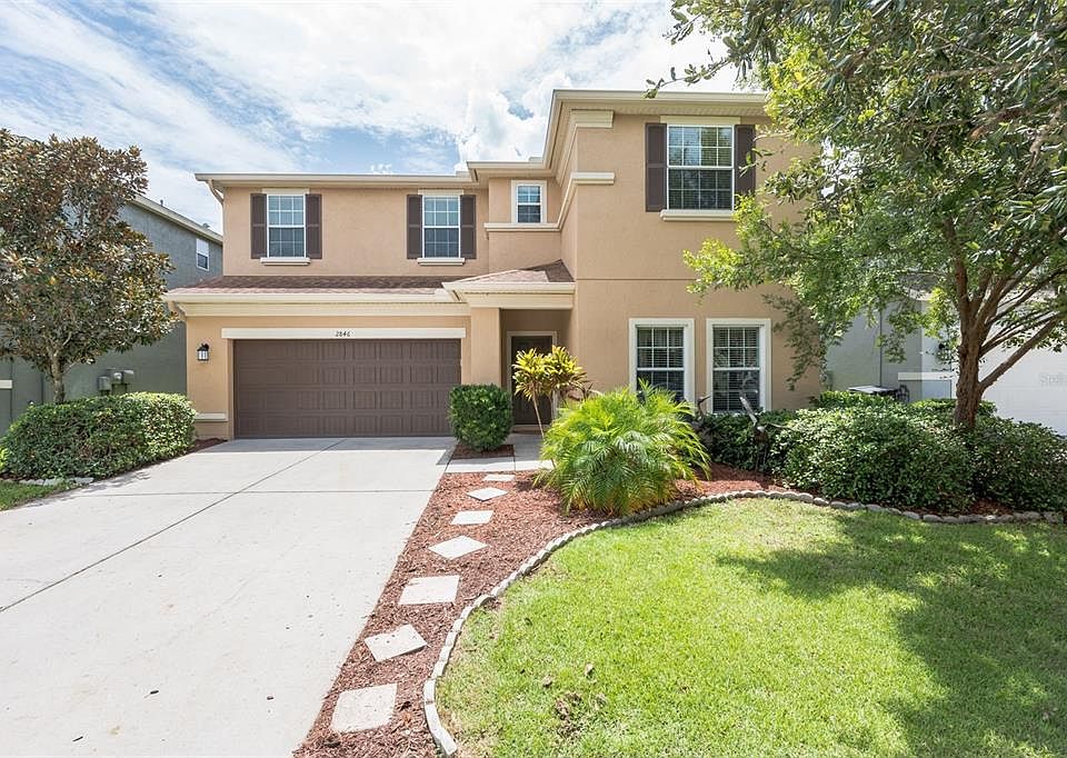 Beautiful, two-story Mendoza floor plan in sought after Stonebrier. Fantastic top-rated schools! This five-bedroom, three bath home is located on the back end of a loop, so traffic is very light. The kitchen is equipped with quartz countertops, marble backsplash, and white 42-inch cabinets, with stainless appliances. There is a bedroom on the first floor for all of your guests as well as a full bathroom. Upstairs, is a large bonus room and four additional bedrooms. The master bedroom is oversized with an additional, very nicely sized separate area to be used for exercise equipment, and office, craft room etc. Master bath has double sinks, marble tile, closet space, and both a separate bath and shower with wall jets. Laundry is on the second floor, and all bathrooms feature quartz countertops. The community features a beautiful swimming pool, workout facility, soccer field, cricket field, and plenty of green space to take long walks. Kitchen appliances and water softener are included. Large yard to accommodate your backyard paradise or build a pool. Clear panel hurricane system. Your new home will be minutes to premier shopping, dining, fitness centers, and with easy access to the the Veterans Expressway, I-75 or I-275, and Dale Mabry for those who need to commute to work.