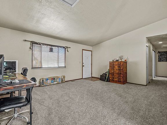 Spacious 4 bedroom, 2 bath, 2 car garage home with new flooring throughout. Wide open concept living, includes the kitchen, dining & family rooms. Gas fireplace in the family room. New cabinets and backsplash in the kitchen. The four bedrooms are nice sized The backyard is fenced with a fully wired shop & storage building (18X28) to set up a man cave or a she shed. Community ‘park like’ green space right across the street. The one way drive circles around the green belt and limits any drive through traffic. The additional shared driveway to the East can be used to access the backyard. This home includes 3 phase power to the garage.