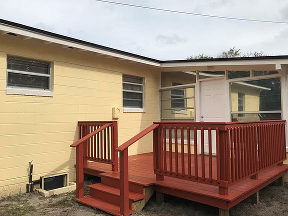 Newly updated 3/2 in quiet neighborhood close to shopping, schools and expressways. Brand new kitchen with SS appliances, double door ice maker refrigerator, built in microwave and dishwasher. Lots of cabinet space, large pantry and granite countertops with breakfast bar Large living room and separate dining room. Spacious bedrooms; master has en-suite bath w/shower. Hall bath has large shower, lots of storage space. Hardwood floors through out. Mini blinds on all windows. Extra wide two car carport with storage room in which is located a water softener and shallow well pump for irrigation along with large shelves for seasonal storage. The laundry is indoors off the sun room and is already equipped with Washer & Dryer. A new deck is off the sunroom and overlooks the private, fully fenced backyard. EXTRA SPECIAL: A 16 x 24 outbuilding with concrete floor and full electric perfect for contractor, serious hobbyist, or massive storage. There is a separate lawn tool shed as well. Interested tenants are encouraged to submit relevant information regarding employment, income, pets, number of occupants, smoking habits, etc and/or the Zillow on line application when requesting a showing. We are local and will meet prospective tenants in person only; no long distance transactions. Background check req'd, verified income 3 x rental, good credit and no criminal history.