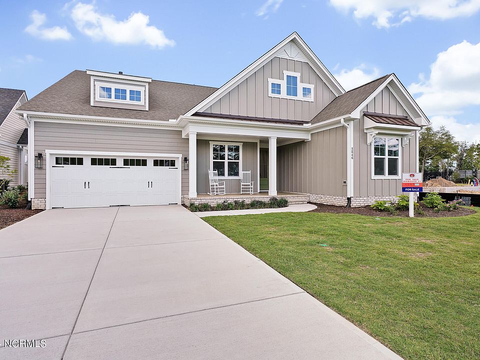 Nestled in the new Sunset Reach community, the exquisite Lumina Island by Kent Homes is ready for you to call home. With enchanting views of the expansive 12-acre lake, this home promises a haven of tranquility and luxury. Elegance and functionality merge seamlessly in this thoughtfully designed layout. The great room, kitchen, dining area, and enclosed loggia with bi-parting doors create a harmonious space for entertaining guests or enjoying cherished moments. The well-appointed kitchen boasts an expansive entertainment island, adorned with quartz countertops, a stainless steel gas cooktop, wall oven, and under-cabinet hood. A 'messy kitchen' and a spacious walk-in pantry keep clutter out of sight. The inviting great room features a stunning fireplace flanked by custom built-ins, providing a cozy retreat. Retreat to your private oasis at the back of the home, ensuring peace and relaxation. The primary suite graces you with beautiful trey ceilings and easy access to the laundry room for added convenience. The spa-like ensuite bathroom offers a fully tiled walk-in shower, double vanity with quartz countertops, and a private water closet. An additional bedroom and a study complete the first floor. Upstairs, do not miss the bonus room with a 210 sq foot covered balcony, which overlooks the lake. Another bedroom and full bath can be found on this level. Kent Homes takes pride in delivering superior craftsmanship, from the finest materials to meticulous attention to detail. This home incorporates energy-efficient features and smart systems, ensuring lower utility bills and a reduced environmental footprint. Sunset Reach is a brand-new gated, riverfront community, conveniently located 10 minutes from downtown Wilmington by boat or car. Residents can enjoy the completed walking and biking trail, as well as kayaking on the serene interior lake. Future amenities include a riverfront marina with boat slips for purchase, community pool with clubhouse, and a pickleball court.