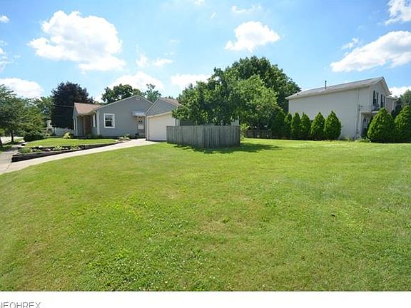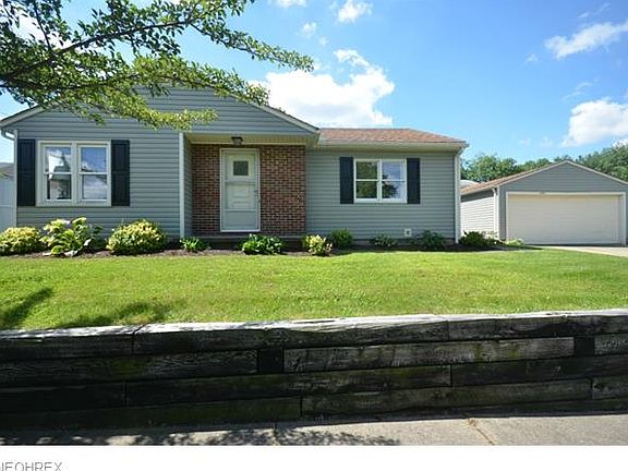 Move in condition Ellet ranch with giant yard, 2 car garage and private view out back. Refinished hardwood floors greet guests in the spacious living rm w big picture window & optional dining area. Large eat in kitchen w updated wood laminate floor, backsplash, hardware, new stainless appliances and expanded cabinetry to accommodate a dishwasher. Stainless gas range, plus microwave dishwasher & refrigerator all stay! Built in hall linen closet plus a remodeled full bathroom w tile floor, vanity w drawers, beadboard& tile surround. Spacious bedrooms w hardwood floors and 2 with built in drawers under the big closets. Full basement w partially finished rec rm (tile floor and some paneling up) adds potential living space. Laundry area w 2 basin utility sink. Updates include: '14 Refinished hardwood floors, Wood Laminate in kit, light fixtures, kit ? door hardware, Stainless appliances, bathroom remodel. '13 100 Amp Elec on breakers. '10 Vinyl siding, dimensional shingle roof & A/C. Windows updated w vinyl replacements. Spacious 2 car garage offers electric, opener, storage cabinets & shelving. Patio area to enjoy the outdoors too! Don't miss this great opportunity for a move in condition Ellet ranch!