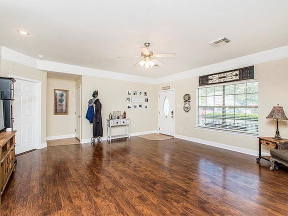 WELCOME HOME! This adorable, meticulously maintained 3 bedroom 2 bath will take you by surprise with its breathtaking custom-built outdoor entertainment area! As you enter, you will notice the engineered hardwood floors in the living area, wood burning fireplace and the windows that offer lots of natural light. The primary suite features a trey ceiling, wood laminate flooring and a custom en-suite with double vanities and his & hers closets. Last but not least, enjoy the sunsets and sunrises on this stunning, custom-built 16X30 covered patio that features: cedar tongue & groove detail on the ceilings, copper faucet & sink, full outdoor kitchen with a built-in refrigerator, 7' ceiling fan, lounge area with an electric fireplace and custom mantel, Wi-Fi switches that control the lights and the covered hot tub area with Trex decking. What more could you ask for? This split floor plan is perfect for privacy with its own outdoor escape! Located in the favorable flood zone X.