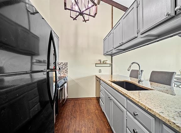 Gorgeous townhome in Jenks School District with garage! Hard surface flooring, updated light fixtures throughout. Open concept. Kitchen w/ granite, undermount sink, new faucets, new disposal. Fridge stays. Vaulted ceilings. Living/dining combo w/ fireplace. Remodeled bathrooms w/ new vanities, faucets, toilets. New sliding glass door to balcony w/ view of pool. Large patio w/ fully fenced private courtyard. Custom closet with barn doors in downstairs bedroom suite. Inside laundry/laundry shoot.