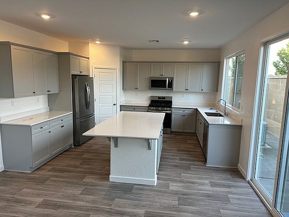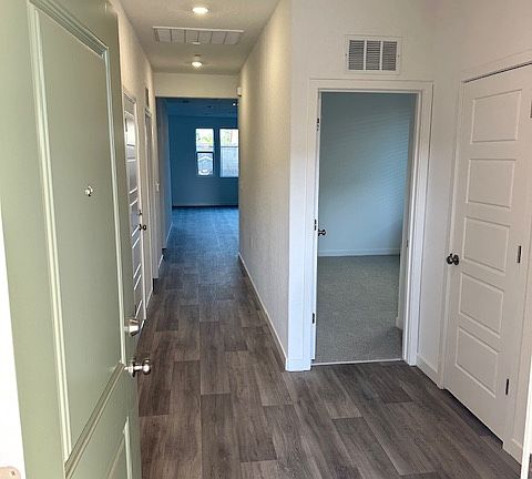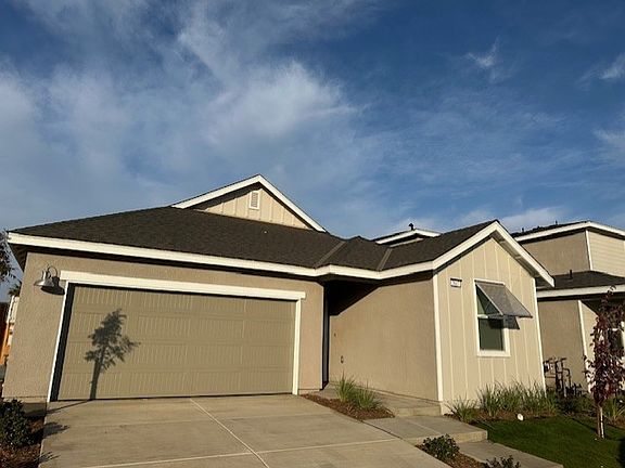 This new single-story home features an open layout among the dining room, Great Room and kitchen with sweeping windows at the back of the residence, offering access to the outdoor space through sliding glass doors. Near the entryway are two bedrooms and one bathroom, while the owner's suite is tucked away for privacy.