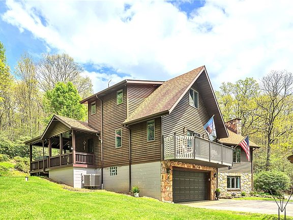 Nestled on 11.34 of lush landscaped, wooded acres in the Laurel Highlands near Nemacolin, this stunning stone &cedar mountain home perfectly blends rustic charm w/modern comforts. Landscaping is truly one-of-a-kind—huge illuminated massive boulders, small pond, newly paved circular DW, chicken coop/dog house w/fence; & horse mini-barn. Explore hiking trails w/ bridge over a gentle stream, or gather around a fire pit under stars. Covered deck w/a newer hot tub. Main-level MBR suite offers private new balcony; jetted tub in bath. Laundry on Main, vaulted ceiling in DR & LR w/a grand stone fireplace & 2024 wood stove. Rustic HW plank floors add warmth & character. Spacious eat-in kitchen w/granite island; cherry custom cab; pantry. Meticulously maintained—most furniture is incl. This property is truly packed w/features. You have to see it to believe it! Experience all the perks of mountain living—hiking, biking, kayaking, fishing, hunting, cross-country & downhill skiing & much more!