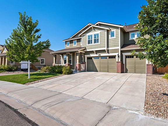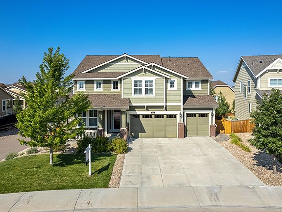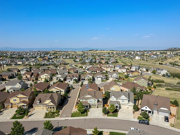On a quiet cul de sac, this exquisitely maintained home boasts incredible space laid out intelligently and appointed with style and class. Flexibility is key, with the ability to have a dining room, den, multiple offices, playroom, and exercise or craft room. It can easily accommodate a range of use needs and wants. Natural lighting and bright colors pervade the house with Plantation shutters throughout. The kitchen has it all, including butler pantry, actual double oven plus microwave, oversized sink, built-in wine storage, and island seating in addition to the eating nook. Bedrooms are spacious, with each connected to a bathroom--two in a Jack 'n Jill arrangement. Similarly, the 2nd-floor laundry room provides maximum ease of use connected to the Primary Bedroom closet, keeping everything out of sight with cabinets and a large utility sink. A large covered porch off the kitchen with surrounding sun and privacy shades is the perfect setting for cocktails or dining al fresco. The backyard is lush with tasteful landscaping and lawn. The 3-car tandem garage has tons of space for storage--including high ceilings. you'll be hard-pressed to not think it's a brand new home. Terrain is an award-winning community with great amenities like trails/two pools, clubhouse, private dog park, proximity to downtown Castle Rock, and The Promenade's and Castle Rock Outlet's many shopping options. Highly rated Sage Canyon Elementary School is located in the neighborhood, with Castle Rock's Wrangler Park adjacent. Enjoy the plentiful wildlife and natural rolling hills while having quick access to I-25, Santa Fe, and Parker Road to get you where you need to go. Homes in the neighborhood move particularly fast and this is well-priced, so don't wait to come check out this move-in ready home.