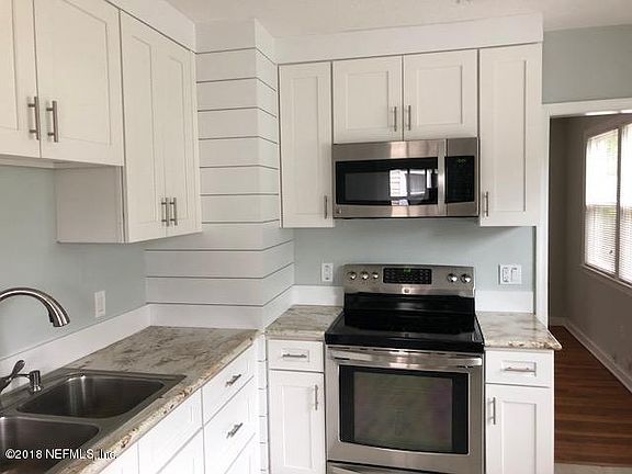 Adorable 3 bed 1 bath Bungalow on nice Quiet street and Neighborhood. Freshly Renovated and Move-in-ready! Completely New Kitchen with Stainless Steel Appliances, Tile Floor and Hardwood Cabinets with Soft Close. Tile and Hardwood Floors throughout. Bedrooms freshly painted with Ceiling Fans. Master Bedroom separate from other bedrooms. Living room with Hardwood floors and New Windows. Bathroom with newly Refinished tub and shower. Inside laundry area for convenience. Completely fenced backyard with Patio and detached Garage/ Shed/Workshop. Architectural Shingle Roof less than a year old. Updated Electrical and Plumbing. Fairly New AC. Quick drive to downtown or 95. Come make this your Home.