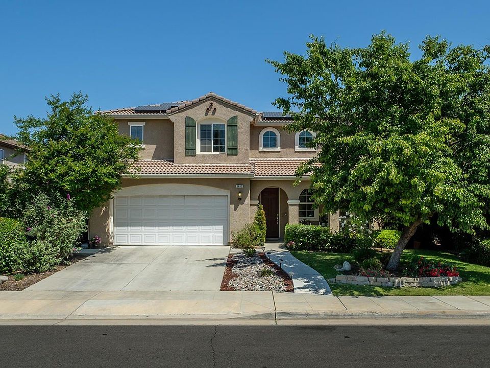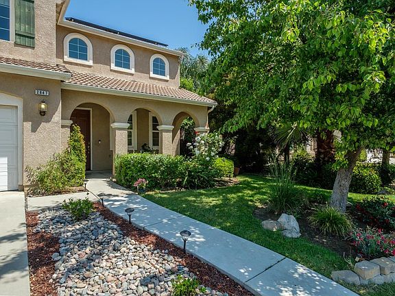 OWNED SOLAR SYSTEM! Amazing 2 Story house situated in a cul-de-sac with an optimum North/South orientation. This Clovis gem features 4 bedrooms/2.5 baths, hard surface flooring throughout the home, Pool with newer energy efficient pump, large covered patio for parties, Living Room with Towering Ceilings, Formal Dining Rm + Large Family Rm with fireplace which is open to the gorgeous kitchen overlooking the pool! Gigantic Master Suite upstairs w/tub, separate stall shower, split dual vanities & two walk in closets. There are three additional bedrooms upstairs PLUS a small loft area ideal for a computer work station. Seller (original owner) states that the tandem 3rd bay garage was converted to a gym/office w/a closet + heating/cooling by a licensed contractor without a permit. County records indicate that the house is 4 bedrooms w/ 2837 sq ft. Owner states that square footage to include gym/office is 3048. Buyer to verify discrepancy. Close to park & award winning Clovis Schools!!!