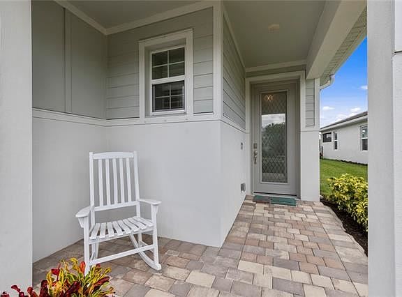 3 Bedroom 2 Bath 2 car garage Single Family Home. Gorgeous lake and fountain view, From the Lanai you see the lake and the club house in the far distance; no other houses in your view. Connections for a future outdoor kitchen. Upgraded front door is of impact glass. Home is full of sunlight. Tile flooring with carpet in two bedrooms. Custom wood plantation shutters on all windows. Open kitchen, upgraded 42" cabinets, Upgraded GE Stainless steel appliances, granite counters and an upgraded tile backsplash. Large pantry that is every cook's dream. The laundry room has Samsung 5.0 cu. Ft Hi-Efficiency Top Load washer and 7.4 cu. Ft electric dryer The 3rd bedroom can be used as an office/den. The Owner's suite contains a nice view to wake up to each morning and contains a large walk-in closet. The Owner's bath contains a two-sink counter with cabinets and drawers, walk in shower with a beautiful tile accent. Community amenities include a beautiful Clubhouse full kitchen, party room, resort style pool with beach area, lounge chairs tables, a gazebo area, fitness center, pickleball, tennis and bocce ball courts. Two dog parks one for large dogs and one for small dogs.