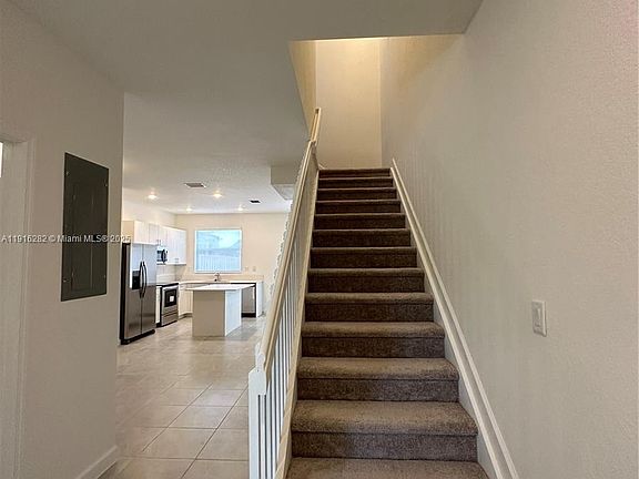 Welcome to your dream home! This beautiful Villa offers an exquisite blend of comfort and style. Boasting 3 bedrooms and 3 baths, it's perfect for a growing family or professionals seeking extra space. The modern kitchen features stainless steel appliances and elegant quartz countertops, making cooking a delight. Enjoy the convenience of tile flooring on the first floor, providing easy maintenance and a sleek look. Upstairs, plush carpeting enhances the cozy ambiance of the bedrooms. The unit comes with a washer/dryer for added convenience. Parking will never be an issue with two assigned spaces right at your doorstep. Privacy is a luxury with no rear neighbors, and the fenced patio allows you to create your oasis of relaxation